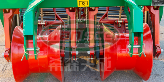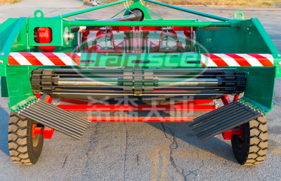 分离清选后的马铃薯输送到机器的后方,通过调整集条挡板的宽度,将马铃薯铺放在地面上,以便捡拾。
