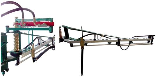喷杆:喷杆通过升降架吊挂于机架上,共有九节组成,用于固定喷头体。左右各四节,运输或地头转弯时,其向后折叠后,固定于机架上;喷雾作业时,伸展后,升降至适当高度进行工作。