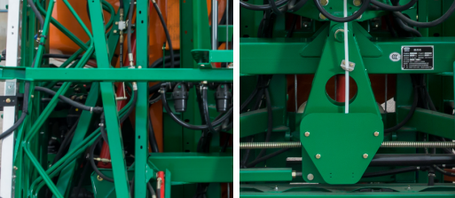 液压控制系统:液压控制系统主要由流量控制阀、行程开关、油缸、液压锁、调压阀、液压胶管等组成,其主要用来控制喷杆的平衡、升降、折叠、伸展与锁定。具体操作详见作业前的基本调节。